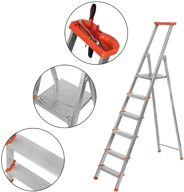 Одностороння 6-ступенева алюмінієва драбина Kanat KA-KAM-205 125 кг