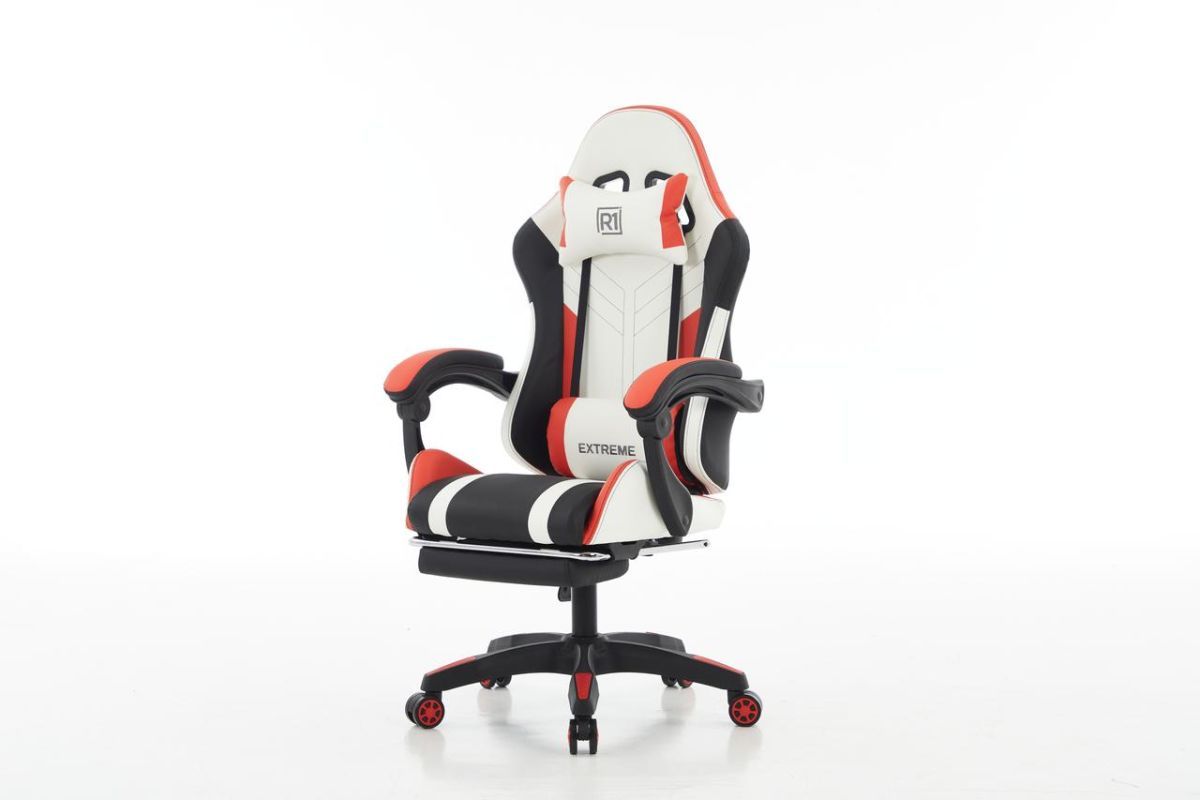 Комп‘ютерне крісло з підставкою для ніг EXTREME R1 Чорно-біло-червоний