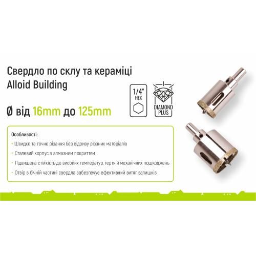 <p>Алмазне корончате свердло від <strong>Alloid Building</strong> призначене для швидкого і ефективного свердління великих отворів в матеріалах високої твердості, таких як: керамічна плитка, мармур і незагартованої скло. Коронка має спеціальне центровочне свердло, наконечник якого виконаний зі сплаву титану з вольфрамом. Центровочне свердло значно полегшує свердління і допомагає надійно утримувати свердло на заданому місці при контакті ріжучої кромки коронки з поверхнею матеріалу, який свердлять</p><p><strong>Алмазне свердло по склу та кераміці Alloid</strong> може використовуватися з побутовими і професійними дрилі та шуруповерти.</p><p><strong>Особливості:</strong></p><ul> <li>Швидка і точна різання без відриву різаних матеріалів</li> <li>Сталевий корпус з алмазним покриттям</li> <li>Підвищена стійкість до високих температур, тертю і механічних пошкоджень</li> <li>Отвір в бічній частині свердла забезпечує ефективне витяг залишків</li> <li>Максимальна швидкість - 12200 об / хв</li></ul><p><strong>Інструмент ТМ Alloid</strong> - це завжди висока якість матеріалів, ергономічний, яскравий дизайн інструментів і упаковки. Повністю відповідає вимогам ГОСТу, а також відповідає високим міжнародним стандартам. Підійде пересічному споживачеві і професіоналу для професійної роботи.</p><p><iframe allowfullscreen="" frameborder="0" height="360" src="https://www.youtube.com/embed/WwhPxatLBns" width="640"></iframe></p>