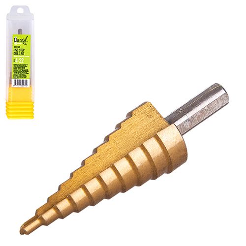 Свердло ступеневе по металу HSS, 4-22мм – це інструмент, який допоможе вам зробити отвори різної діаметру в металевих деталях. Це свердло має 9 ступенів заточення, що дозволяє здійснювати буріння без попереднього свердлення отвору напівкруглої форми. Завдяки високоякісному матеріалу – HSS – інструмент довговічний і зберігає гостроту вістря.