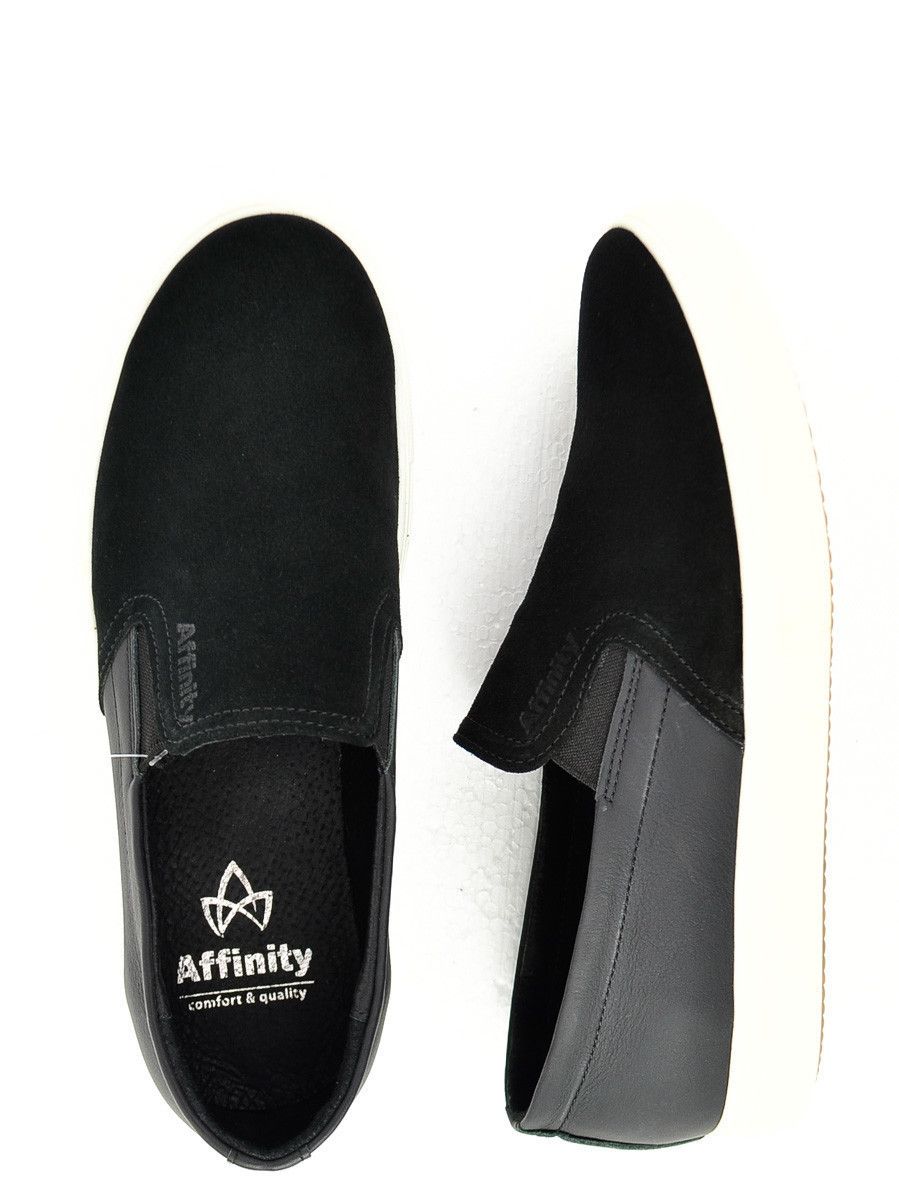 Модні чоловічі мокасини від виробника якісного та натурального взуття - Affinity. Модель виготовлена із застосуванням лише натуральних матеріалів. Підошва гума, кріплення гумки, модель на весну-літо-осінь. Колір взуття Чорний. Матеріал верху Замша, розміри 39-45