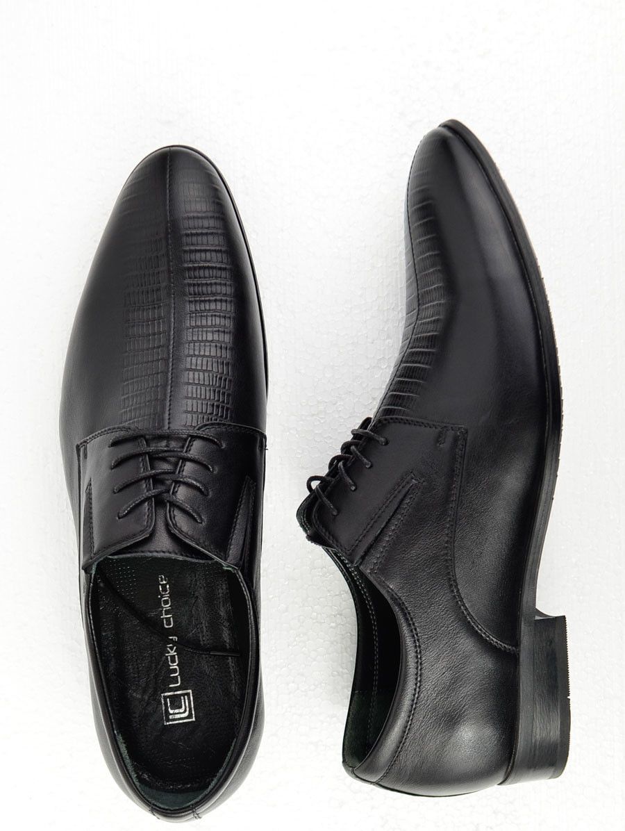 Класні чоловічі туфлі, класичні. Є шнурки, шкіра із тисненням. Гарно виглядають на ніжці, модель на Весна-Осінь. Колір взуття Чорний. Матеріал верху Натуральна шкіра, розміри 39-45