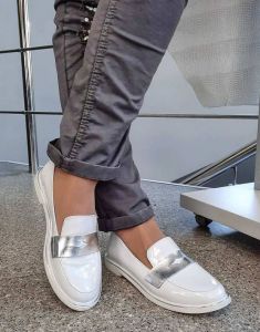 Стильні туфельки із натуральної шкіри білого кольору. Модель сезон Весна-Літо-Осінь колір Білий. Нова модель свого сезону, зручна та стильна