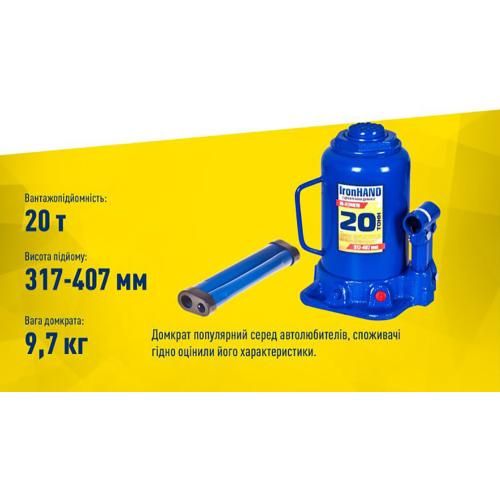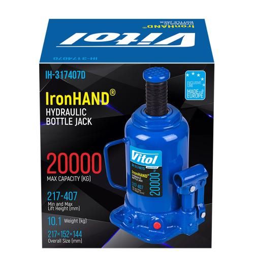 Домкрат гидравлический телескоп 20 т картон. Высота подъема 217-407 мм 9,7кг Iron Hand (IH-317407D) (IH-317407D)