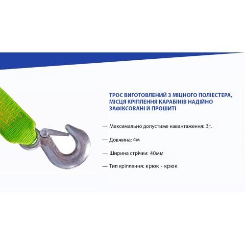 Трос буксирувальний ST206/TP-206-3-1 К (FL) 3т стрічка 40мм х 4м люмин./гак/в пакеті