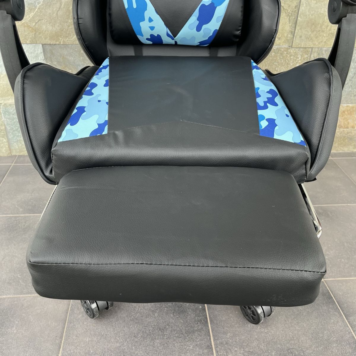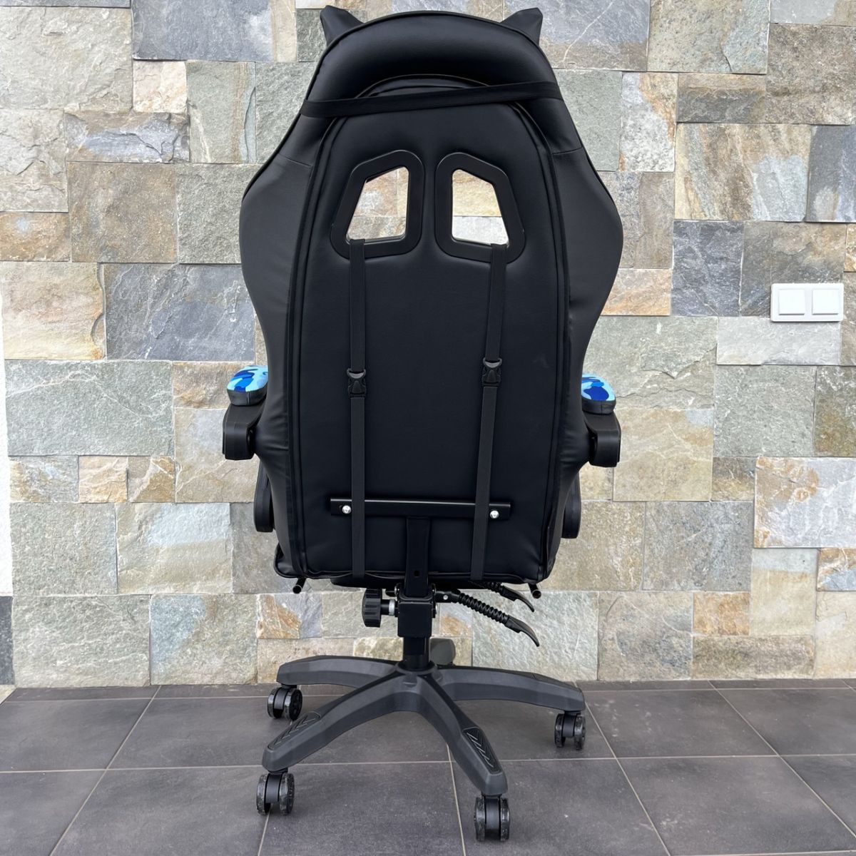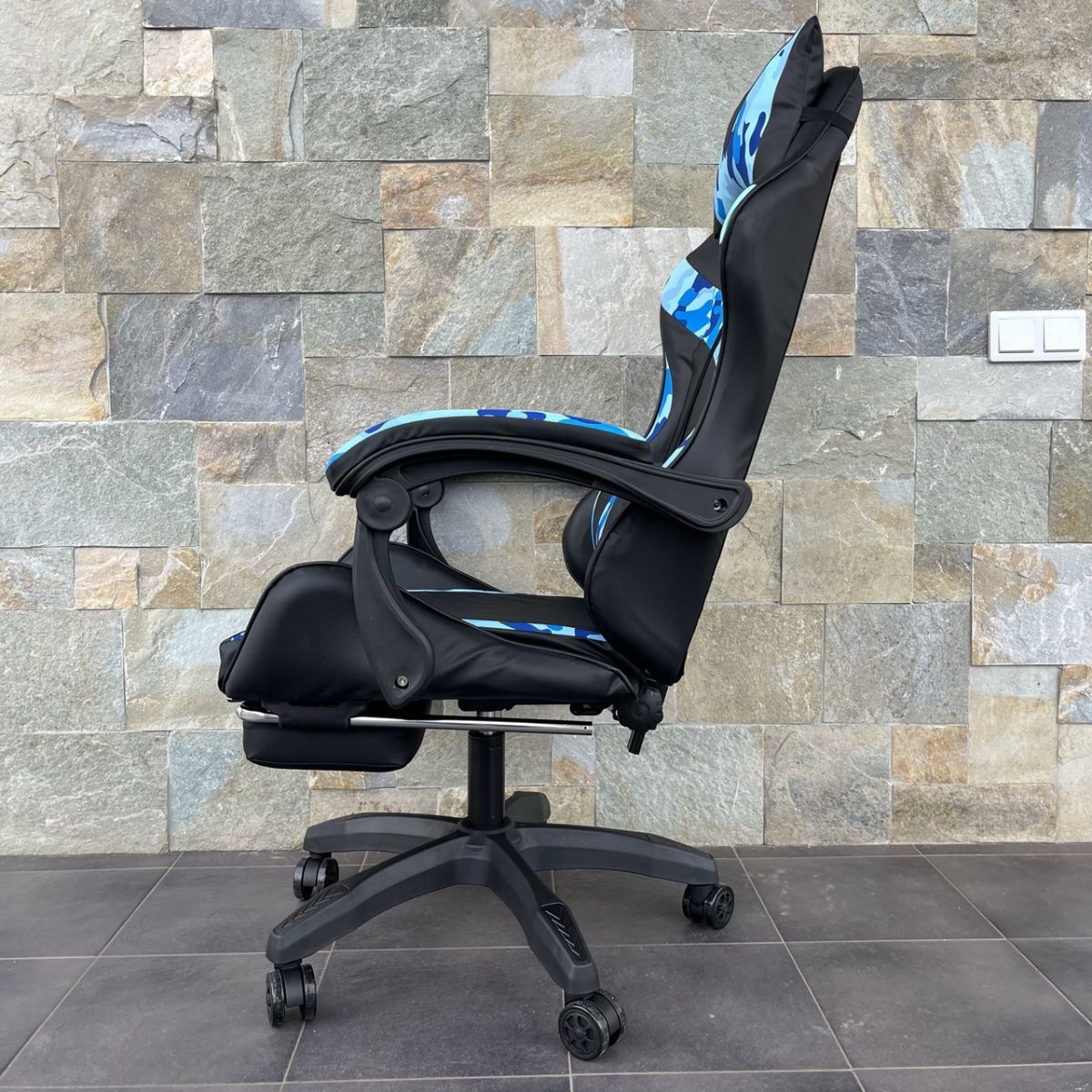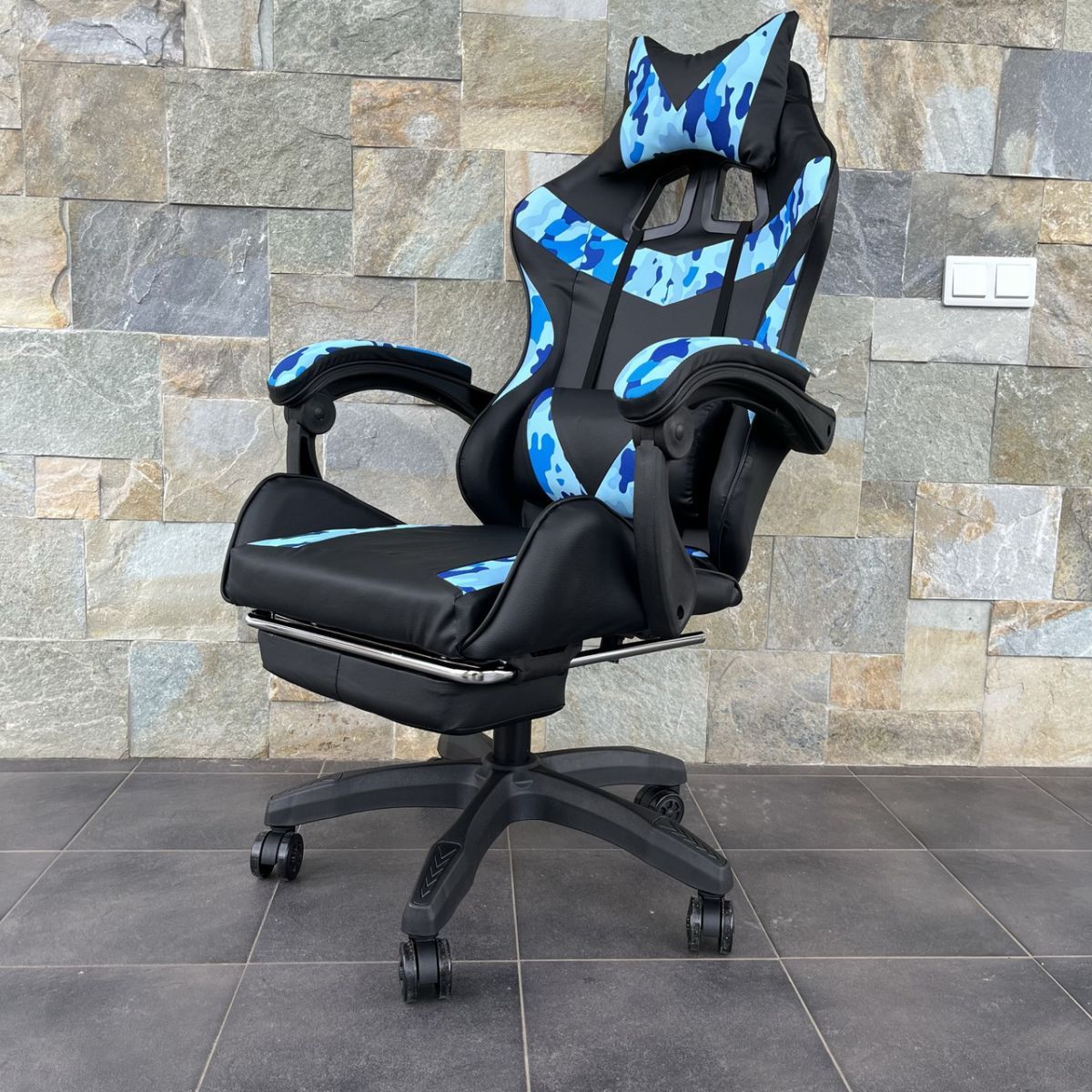 Компьютерное кресло PRESTIGE Черное с голубыми камуфляжными вставками, Prestige, экокожа