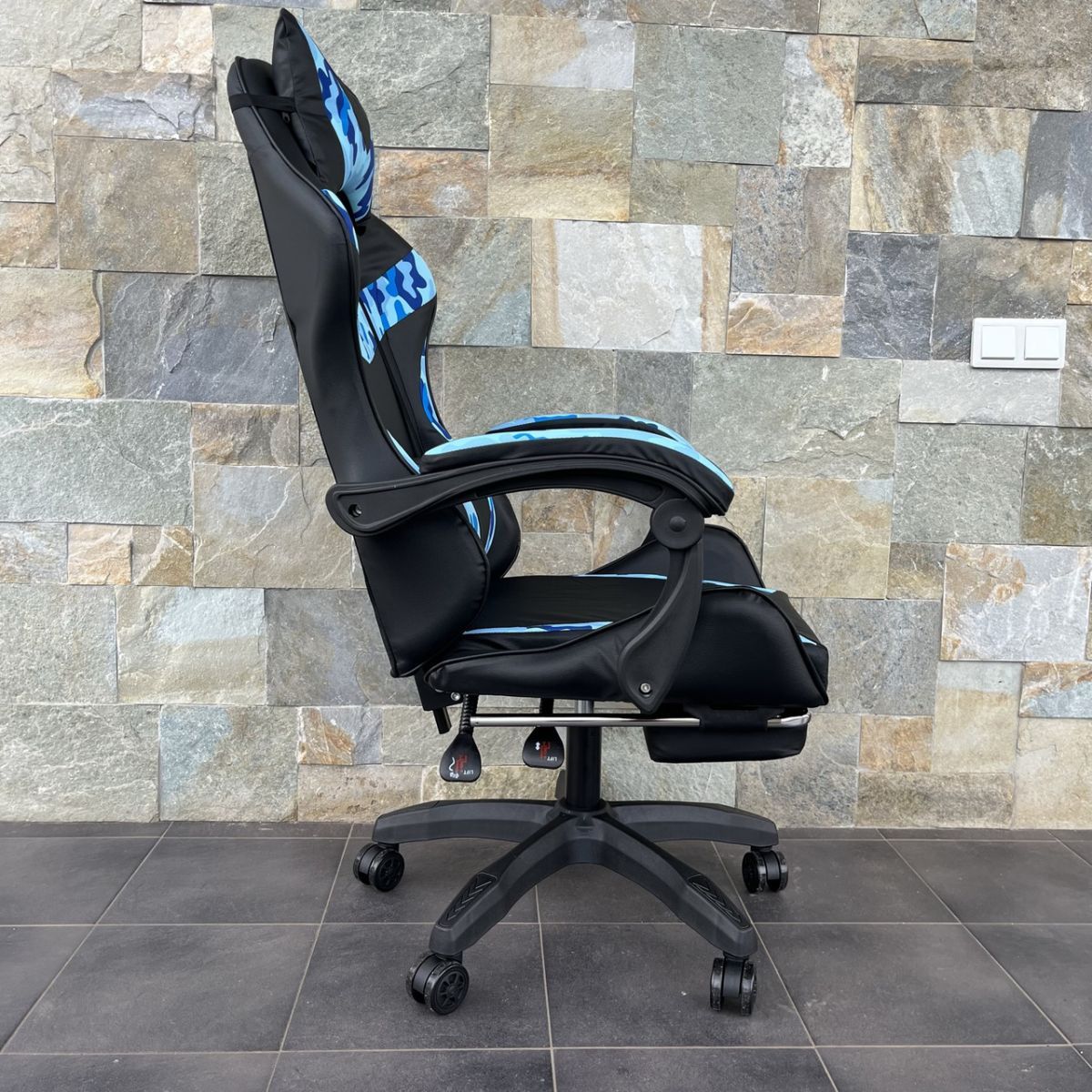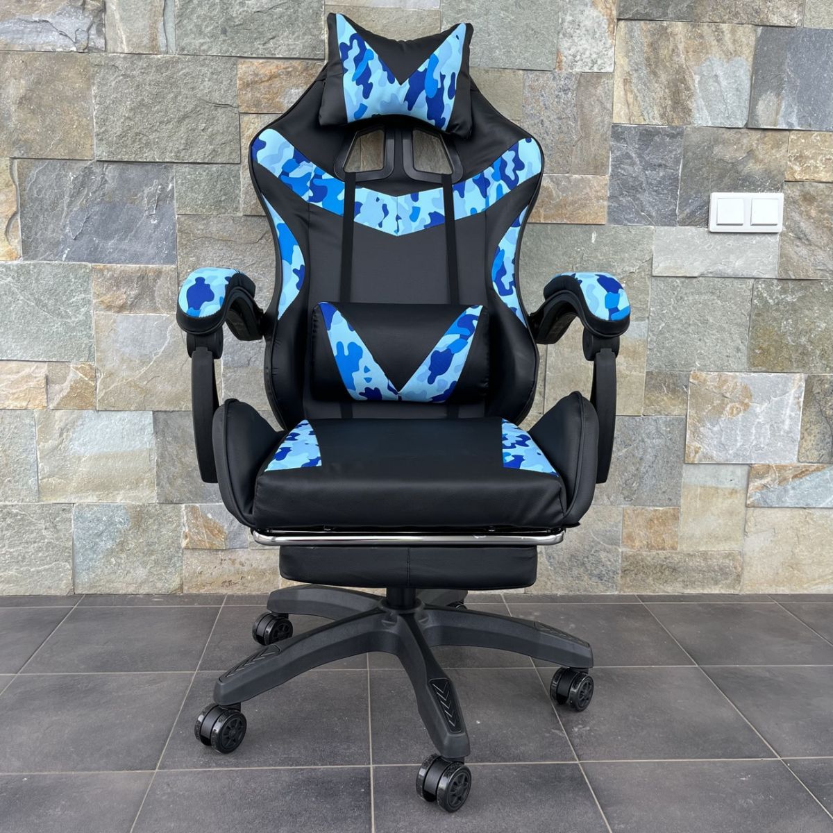 Комп‘ютерне крісло PRESTIGE Чорне з голубими камуфляжними вставками