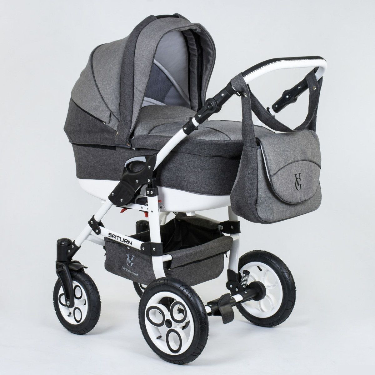 Универсальная коляска Saturn Серая (57321) на белой раме.