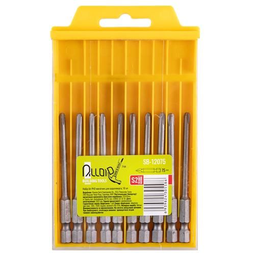 Alloid. Набор бит магнитных для шуруповерта PH2 75мм, S2 (10шт) (SB-12075)