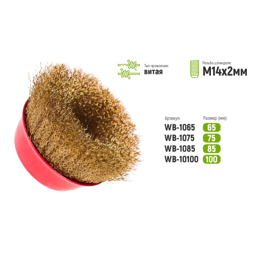 Щетка торцевая "крученая проволока" 85мм, М14х2 Alloid (WB-1085)
