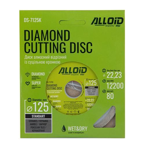Диск алмазный отрезной со сплошной кромкой 125 мм Alloid (DS-7125К)