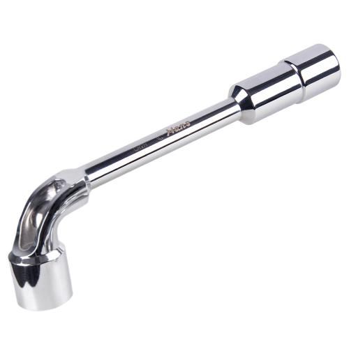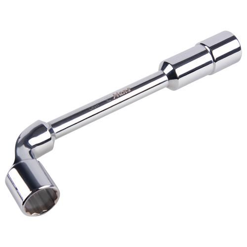 <p><u>Технические характеристики:</u></p><p>Металл: Хром ванадий</p><p>Покрытие: зеркальное</p><p>Дополнительное покрытие: хром-никель</p><p> </p><p><u>Описание:</u></p><p>Применяется при работе с длинными резьбовыми деталями (шпильками) или в труднодоступных местах, заменяя головку, вороток и удлинитель.</p><p>Угловой проходной ключ представляет собой вороток с двумя жестко закрепленными торцевыми головками имеющими две перпендикулярные оси вращения.</p><p>Короткая сторона ключа имеет сквозное (проходное) отверстие.</p>