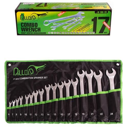 Набор ключей Alloid – это комбинированный набор из 17 предметов, изготовленных из хром-ванадиевой стали.