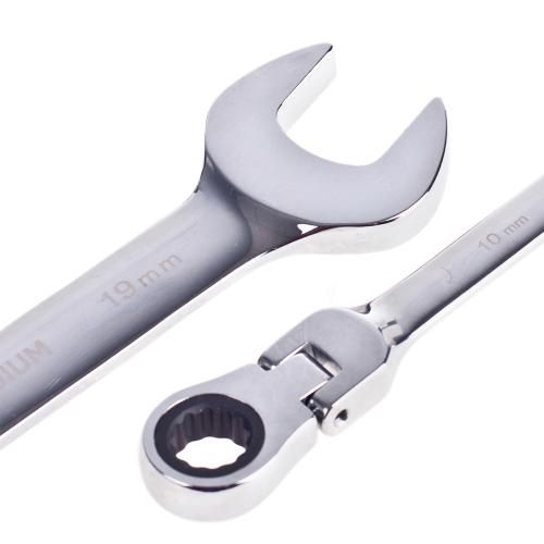 Набор комбинированных шарнирных ключей с трещоткой и карданом бренда Alloid – изготовлен из легированной хромованадиевой стали по технологии позволяет применять высокие нагрузки. Инструмент предназначен и может быть использован на промышленных предприятиях, а также применяться в быту. с повышенными нагрузками • надежный захват, способствует меньшему скольжению ключа • Долговечный