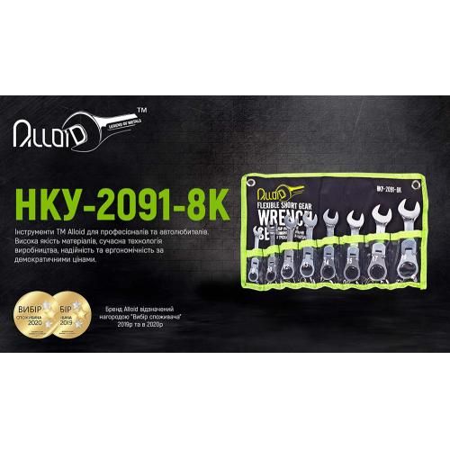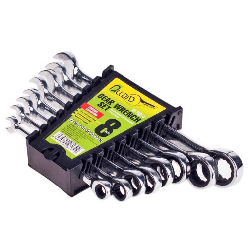 Набор ключей комбинированных трещоточный и карданом 8 предметов, 8-19мм Alloid