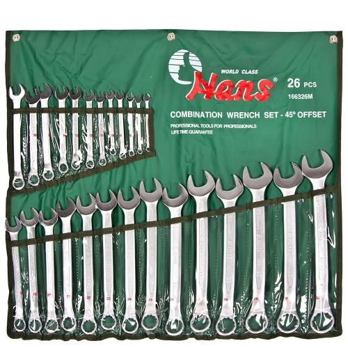 Набор ключей комбинированных изогнутых 45°, 26 пр. 6-32 мм лента (166326M) HANS (166326М)