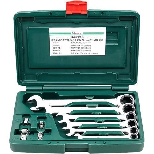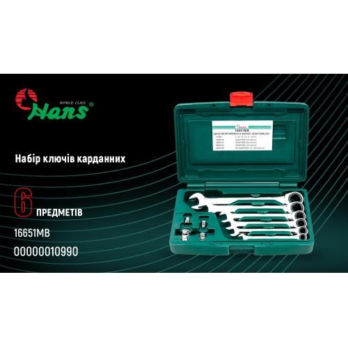 Набор ключей трещоточных с переходниками 8-19 мм, 6 пр., пласт кейс (16651MB) HANS