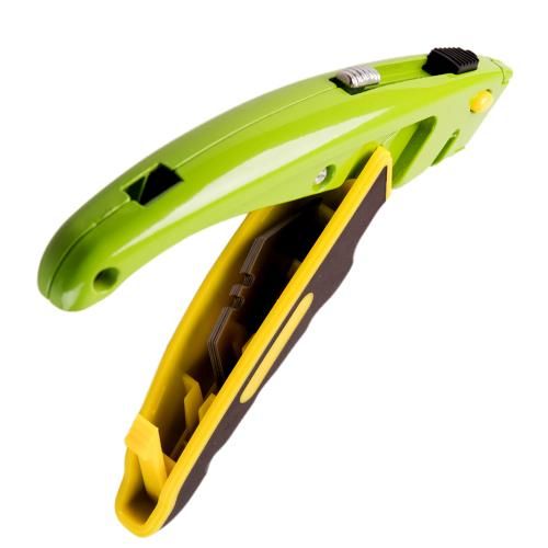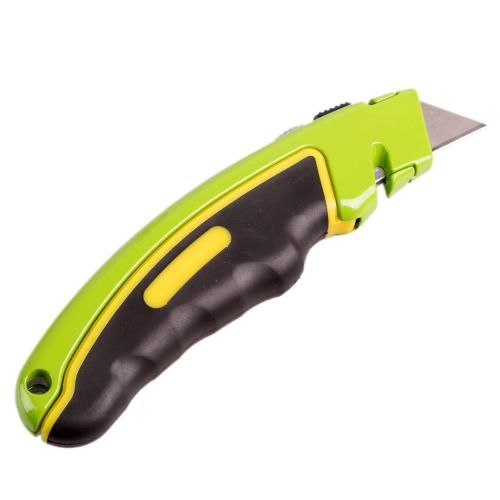 Нож алюминиевый с выдвижным трапециевидным лезвием (5шт) прорезиненный Alloid (НА-1854)