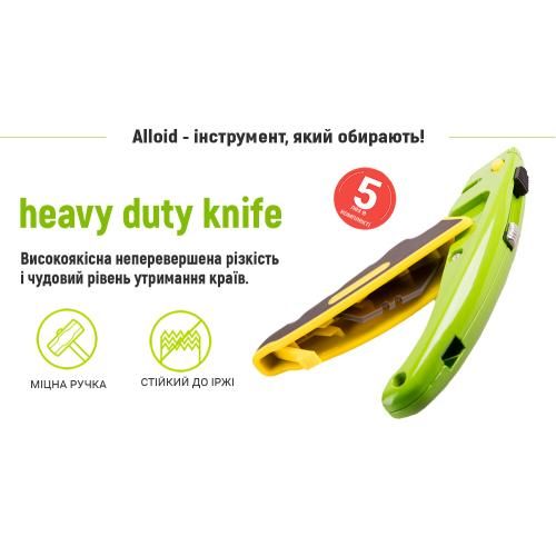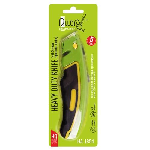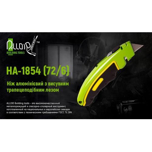 <p>Професійної ніж, висувний з трапецієподібним лезом <strong>Alloid НА-1854</strong> використовується для розрізання паперу, картону, покриття для підлоги і інших матеріалів.</p><p>Корпус ножа виконаний з алюмінію одночасно і легкий, і міцний, для забезпечення надійного контакту з рукою і для запобігання ковзання при роботі корпус забезпечений додатковими прогумованими накладками по краях.</p><p>Переваги ножа Alloid:</p><ul> <li>Ергономічний корпус з двох матеріалів забезпечує різання з високою точністю і зручність в роботі</li> <li>Фронтальне завантаження леза з простим натисненням кнопки</li> <li>Відсік для зберігання до 5-ти лез в рукоятці, для доступу до яких не потрібно будь-якого інструменту</li> <li>Інтегрований різак линви, діє при безпечному прибраному положенні леза</li> <li>Алюмінієвий корпус для інтенсивного використання</li> <li>Спеціально передбачена гумова вставка під великий палець в передній частині ножа</li> <li>Надійна фіксація леза в напрямних</li></ul><p> Корпус з алюмінієвого сплаву. Упакований в блістерну упаковку.</p><p>Інструмент Alloid для професіоналів і домашніх майстрів, ідеальне поєднання якості і демократичної ціни.</p><p></p><p><iframe allowfullscreen="" frameborder="0" height="360" src="https://www.youtube.com/embed/pm1CC5GIUAw" width="640"></iframe></p>
