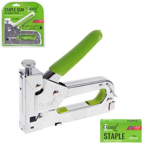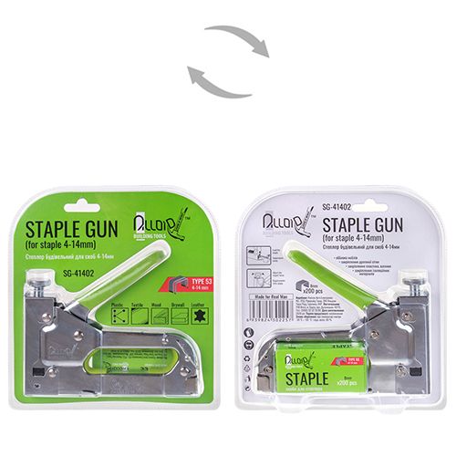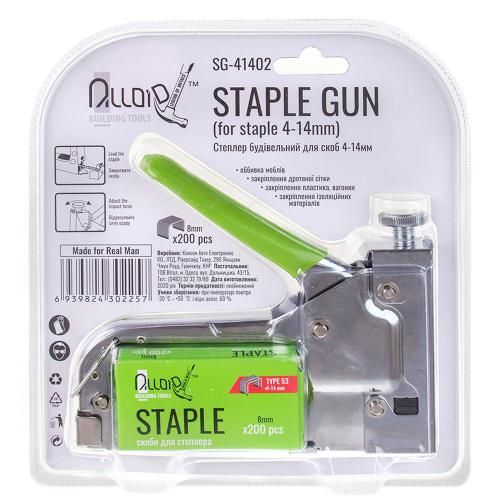 Степлер строительный для скоб 4-14мм + 200скоб 8мм (хром) Alloid