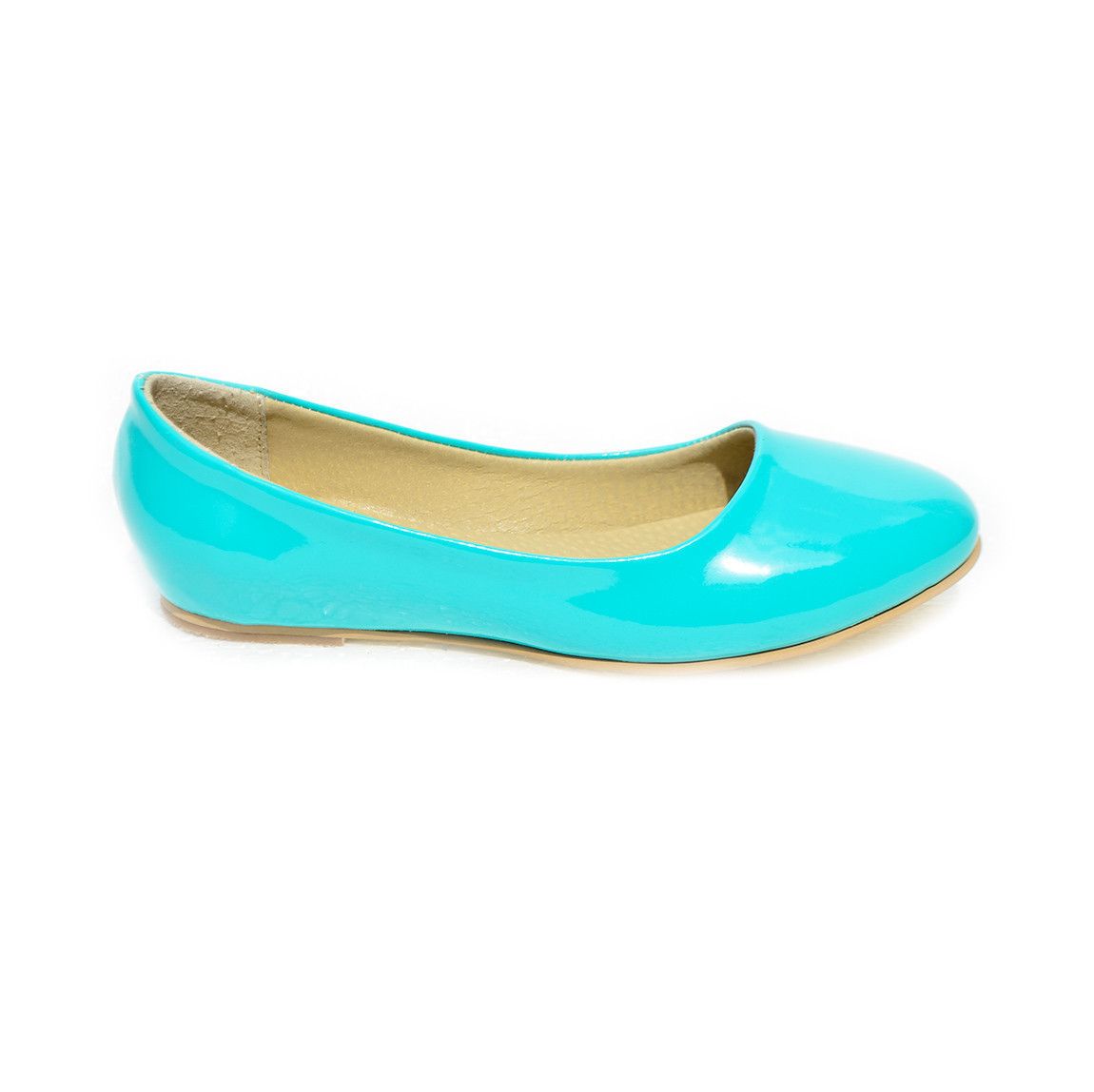 Удобные женские балетки из натуральной, лаковой кожи. Модель изготовлена со слегка закругленным носиком. Красивый цвет. Модель на сезон Весна-Осень цвет бирюзовый. Удобная и стильная модель для женщин