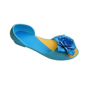 Красивые, модные балетки нового сезона с пенистым пвх. Мягкие, удобные, хорошо гнутся, впереди красивый цветок желтого цвета. Модель на летний сезон синий цвет. Одна из самых удобных колодок в нашем магазине