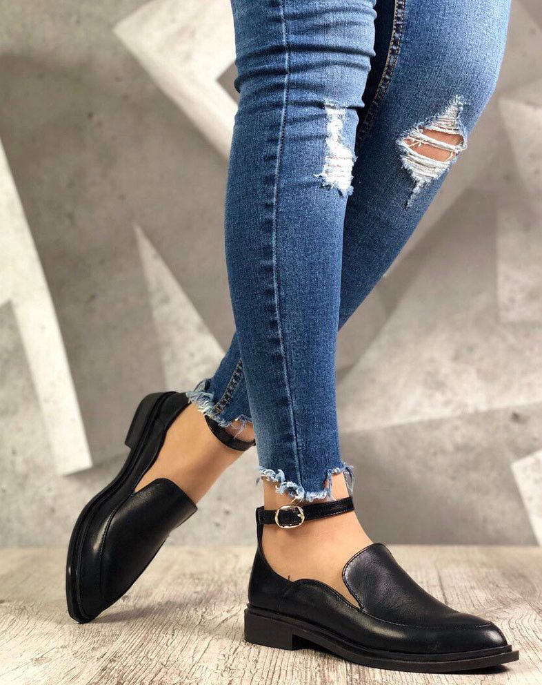 Женские туфли из гладкой черной кожи. Модель на сезон Весна-Осень цвет Черный. Новая модель своего сезона, удобная и стильная