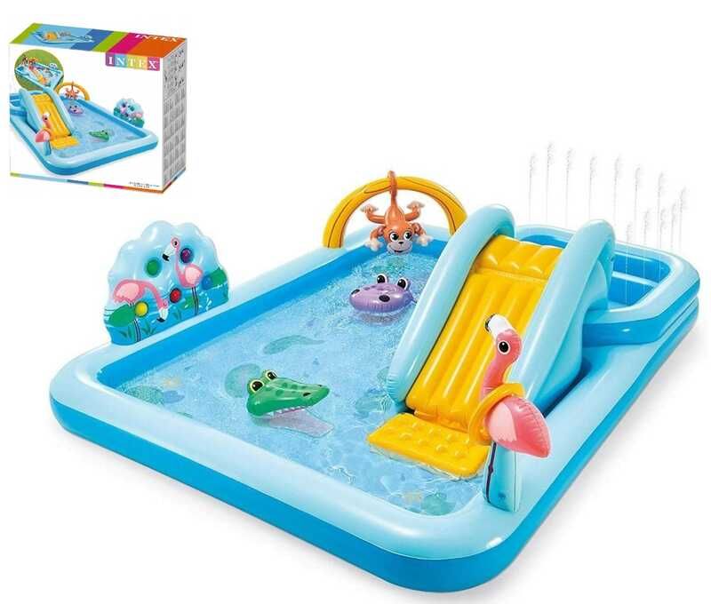 Intex Игральный центр 57161 NP (2) "Приключения в джунглях", от 3 лет, горка, игра в кольца и шарики, размер 257х216х84см.