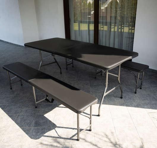 Набір садових меблів Gardlov 17966: стіл 180 см + 2 лавки Чорний