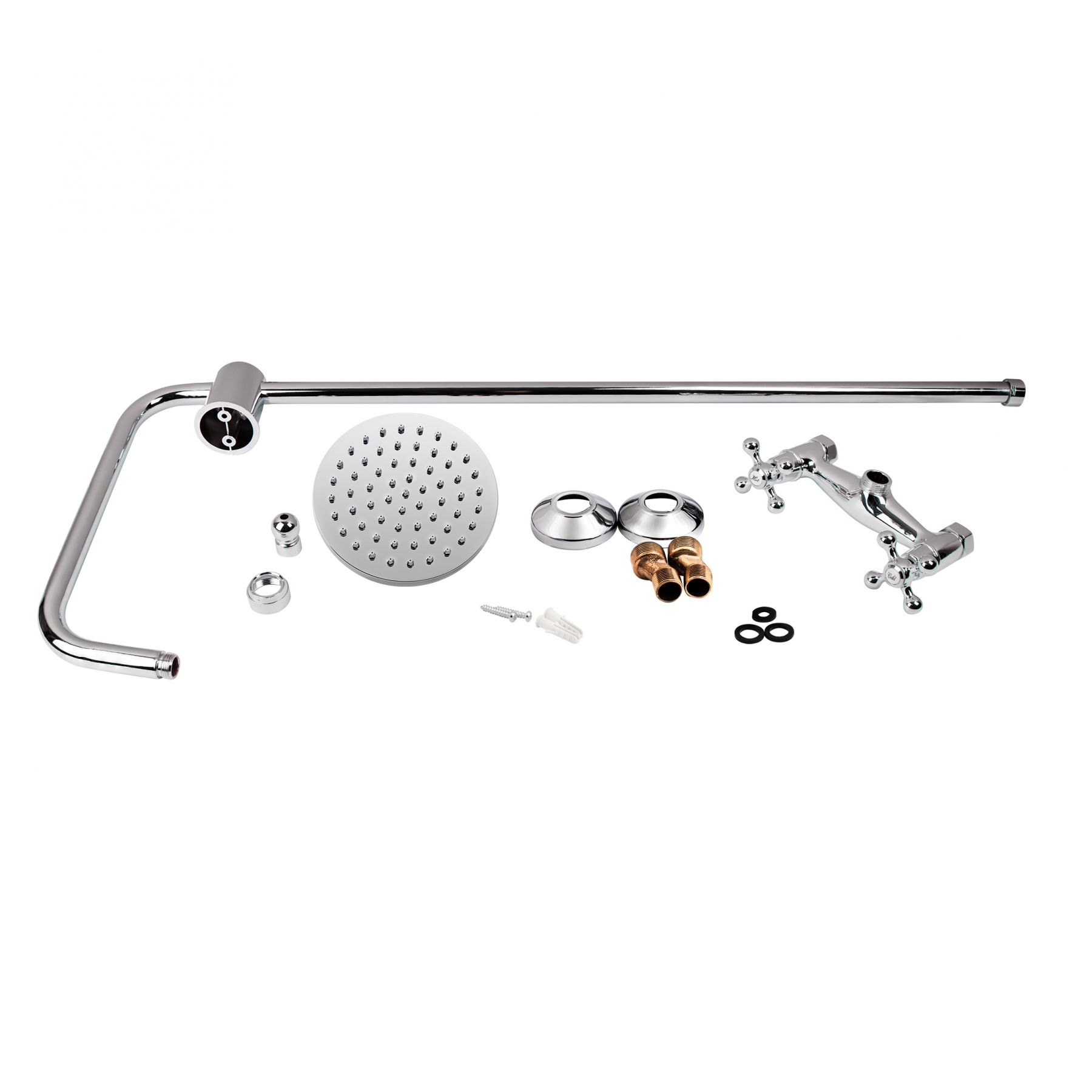 Комплектация:Смеситель, кронштейн для верхнего душа, воронка для верхнего душа, душевая стойка, крепежные детали.