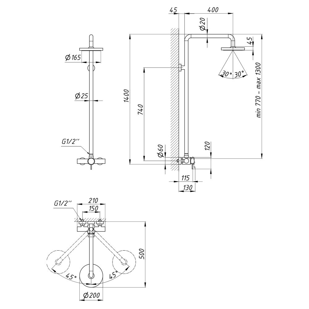 Габариты изделия (ВхШхД), мм:1400х210х500