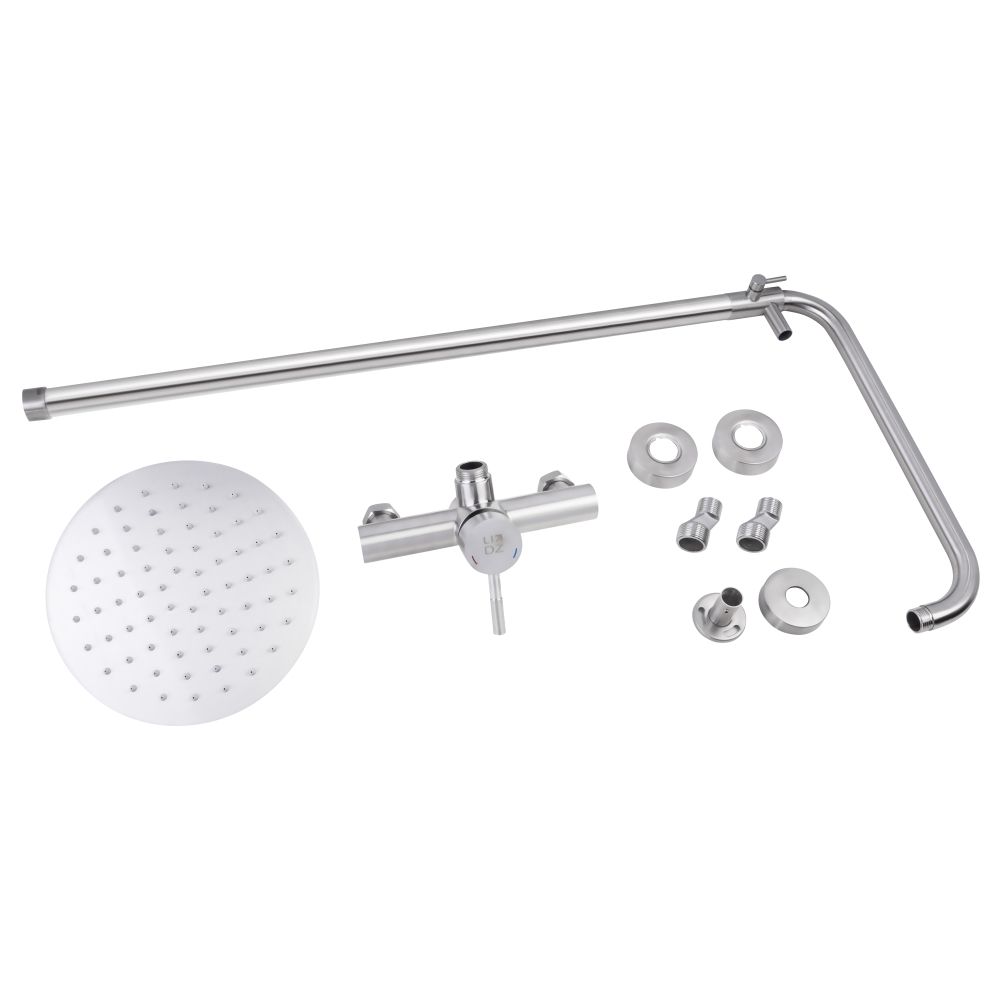 Комплектация:Смеситель, кронштейн для верхнего душа, воронка для верхнего душа, душевая стойка, крепежные детали.