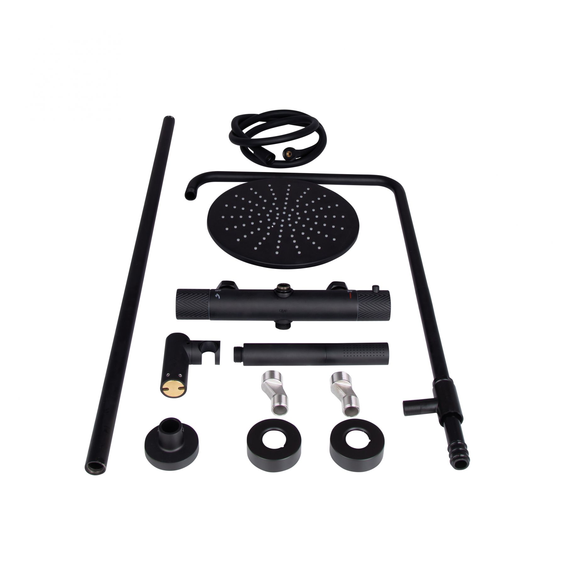 Душевая система универсальная Qtap Brno термостатическая на два потребителя QTBRN5769103ONB Black Matt
