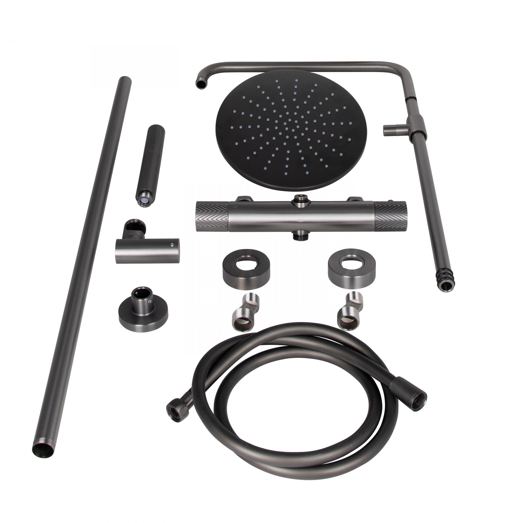 Душевая система универсальная Qtap Brno термостатическая на два потребителя QTBRN5769103ONK Black Matt