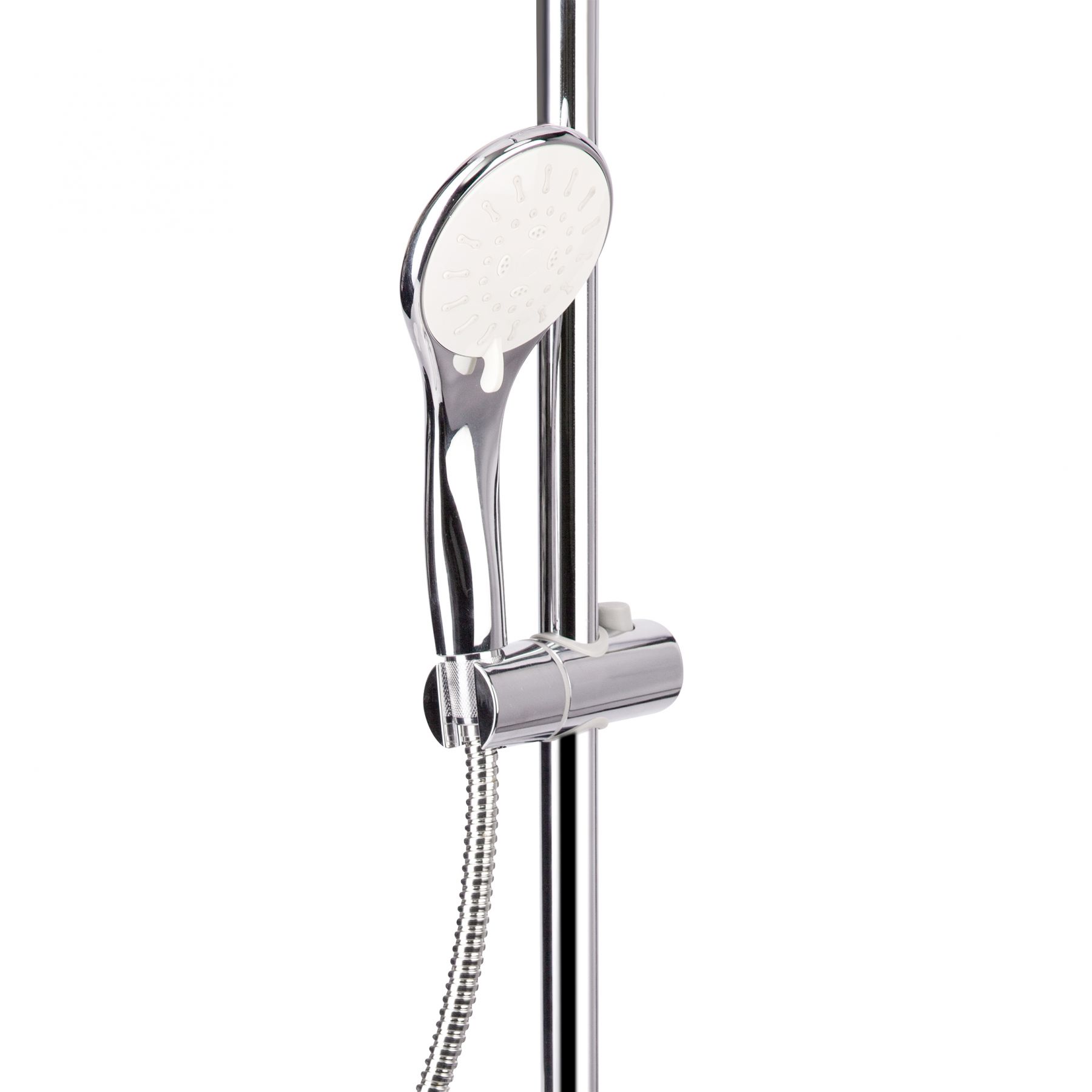 Комплектация:Смеситель, кронштейн для верхнего душа, воронка для верхнего душа, кронштейн для ручного душа, воронка для ручного душа, душевой шланг, душевая стойка, полка, крепежные детали.