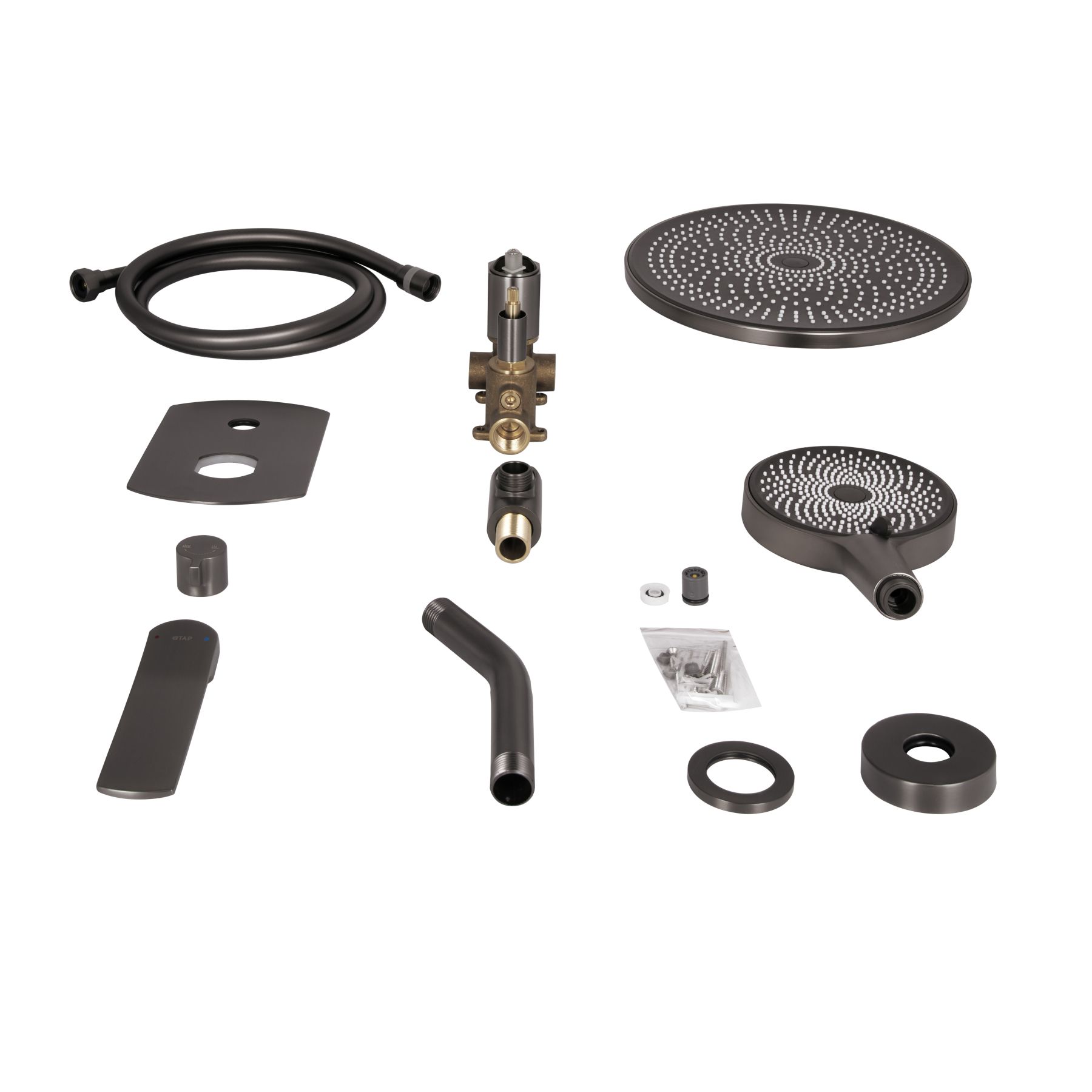 Комплектация:Змішувач, верхній душ, ручний душ, шланг.