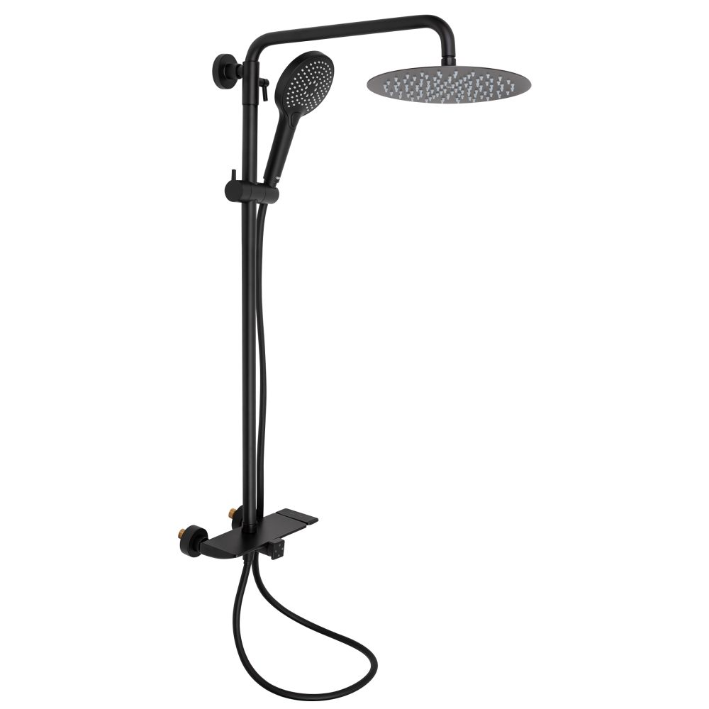Душевая система универсальная Qtap Sloup на три потребителя (с изливом) с полкой QTSL51105OGB Black Matt