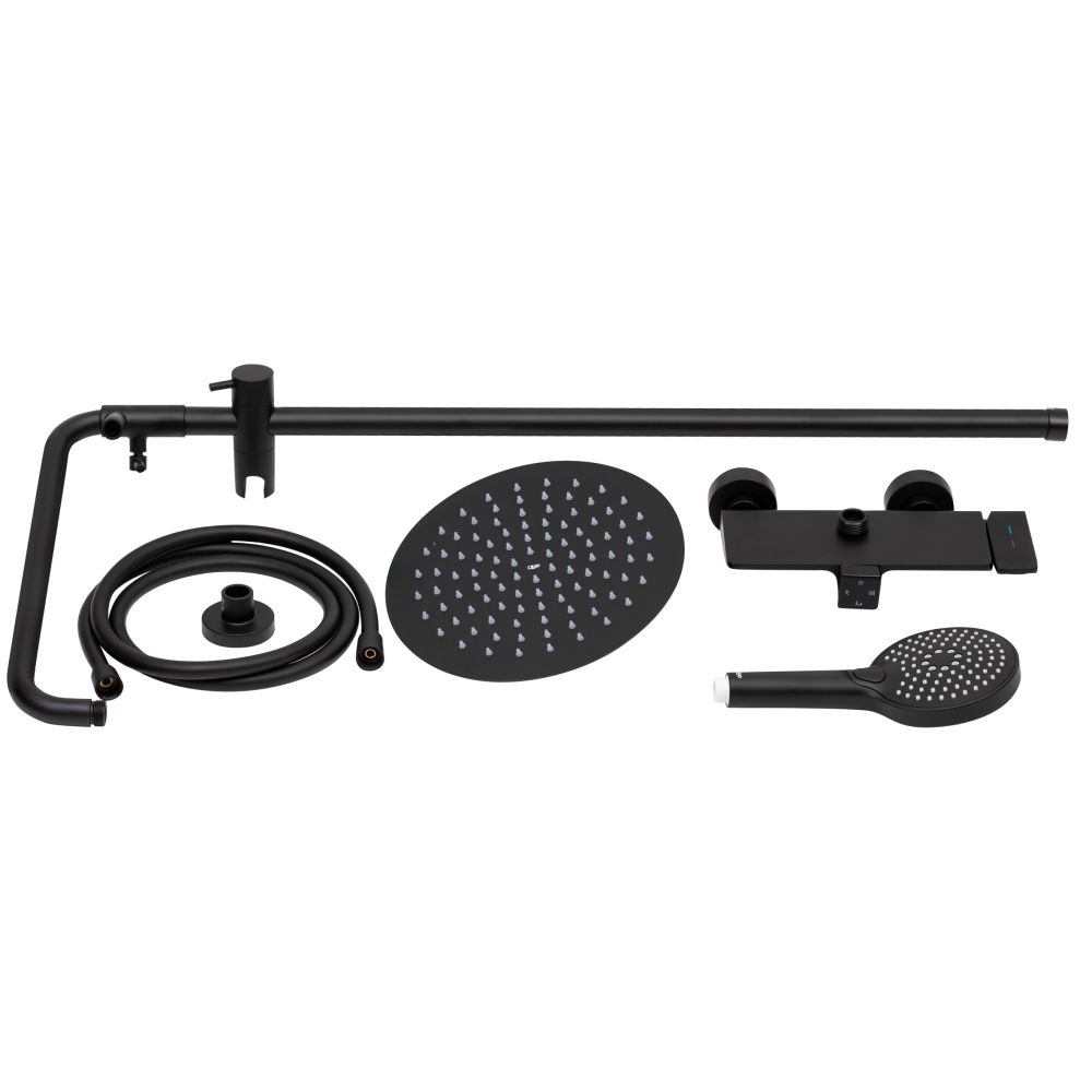 - Душевая система Qtap Sloup 51105OGB состоит из душевой стойки с верхним и ручным душем, а также смесителя.