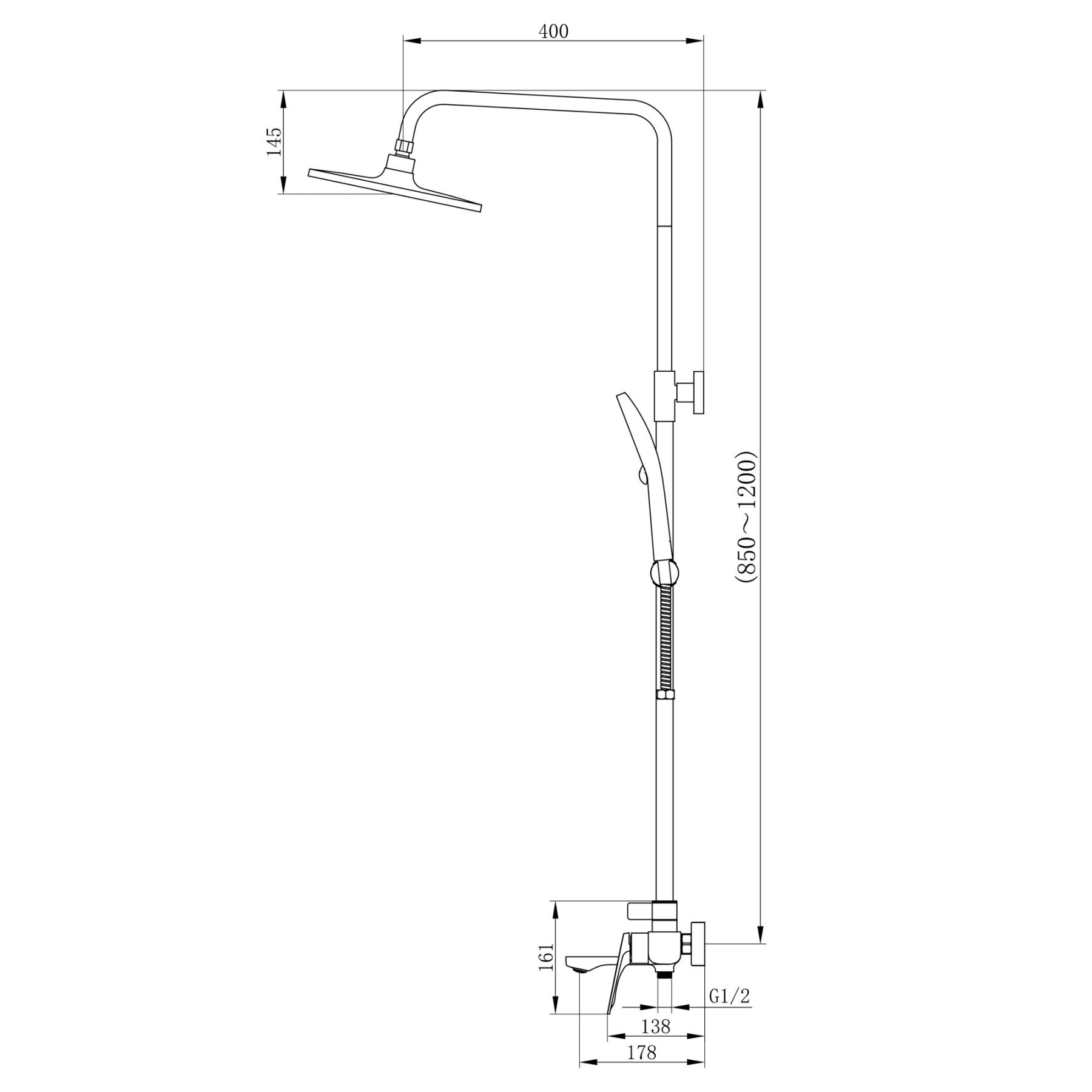 Висота душової стійки, мм:850-1200