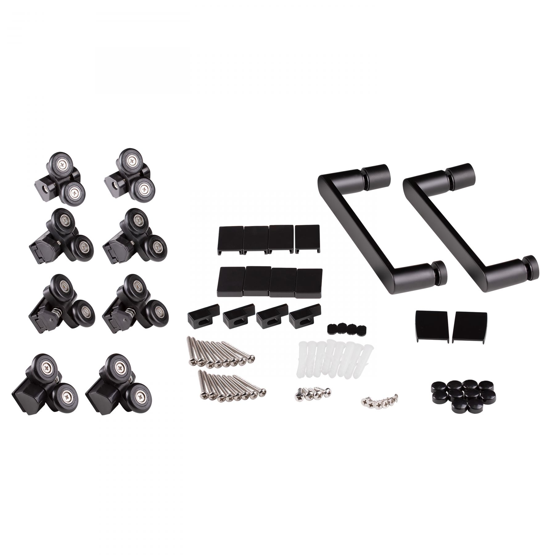 Комплектация:Двойные ролики, ручки, верхний профиль, нижний профиль, боковые профили, набор уплотнителей, расширительные профили, 2 стеклянных дверей, 2 глухих стекла, комплект крепежных деталей, заглушки, соединительные элементы, фиксаторы.