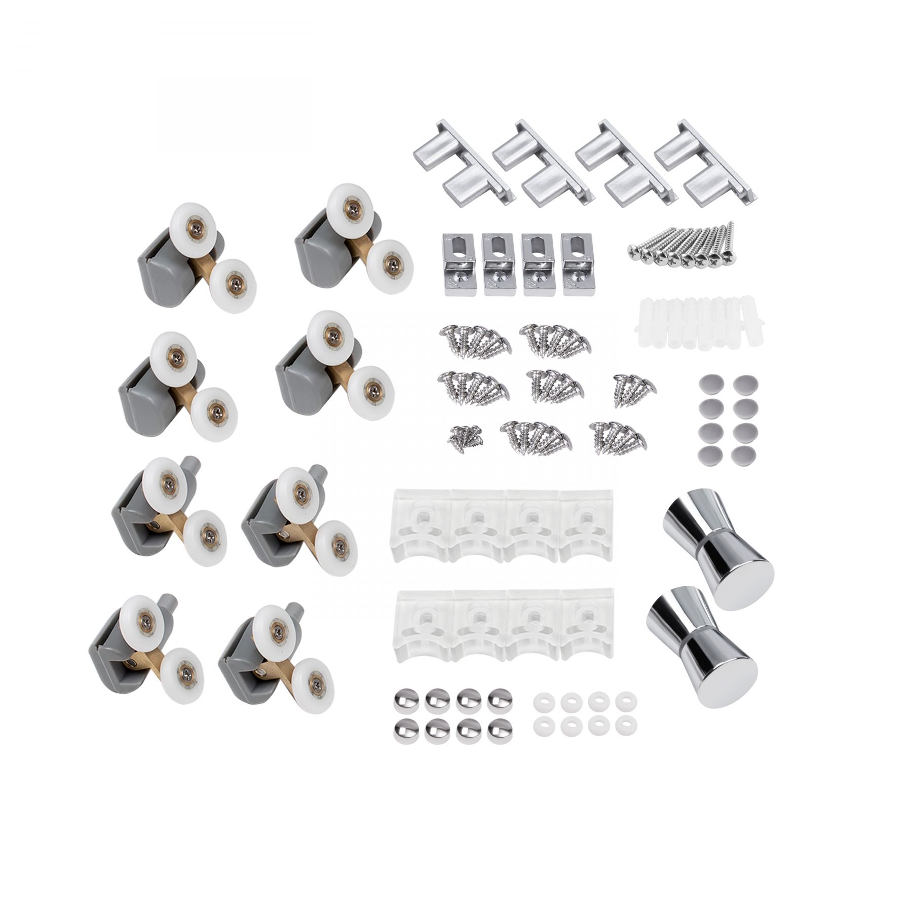Комплектация:Поддон, двойные ролики, ручки, комплект крепежных деталей, глухое стекло, стеклянная дверь, профиль, ножка.