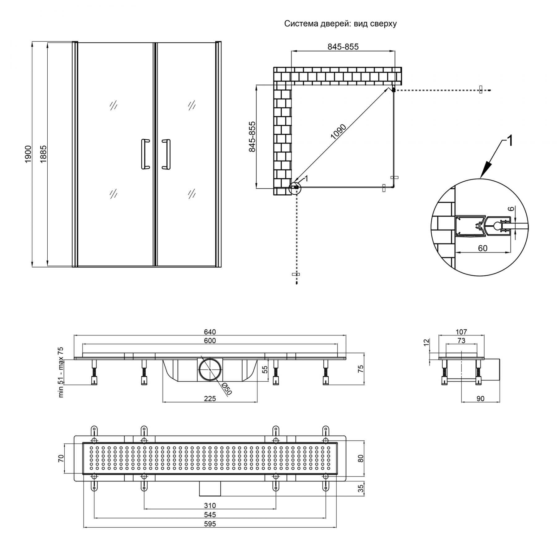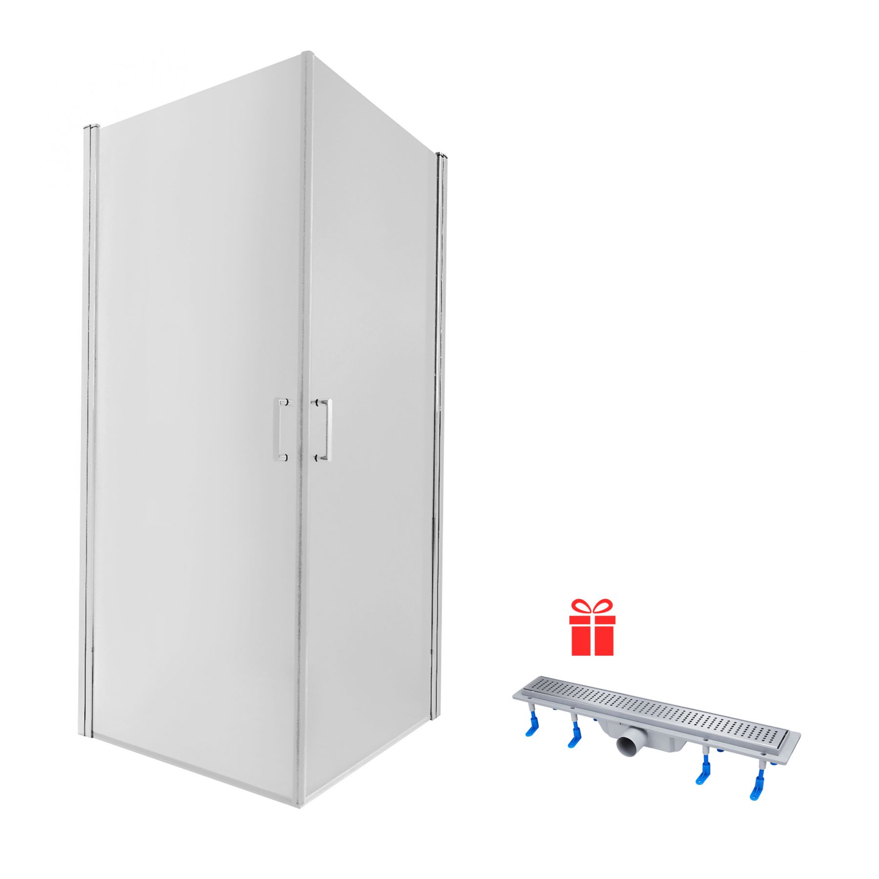 Набор Qtap душевая кабина Gemini CRM1099SC6 90х90 см, стекло Clear 6 мм + трап линейный Dry FB304-600 с сухим закрыванием и нержавеющей решеткой 600х73 мм