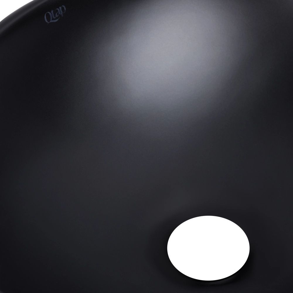 Комплект Qtap Dove: Раковина накладная овальная 410x335x145 мм Matt Black + Донный клапан PU03