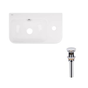 Комплект Qtap Tern: Раковина подвесная прямоугольная правая 450х260х155 мм White + Донный клапан PU02O