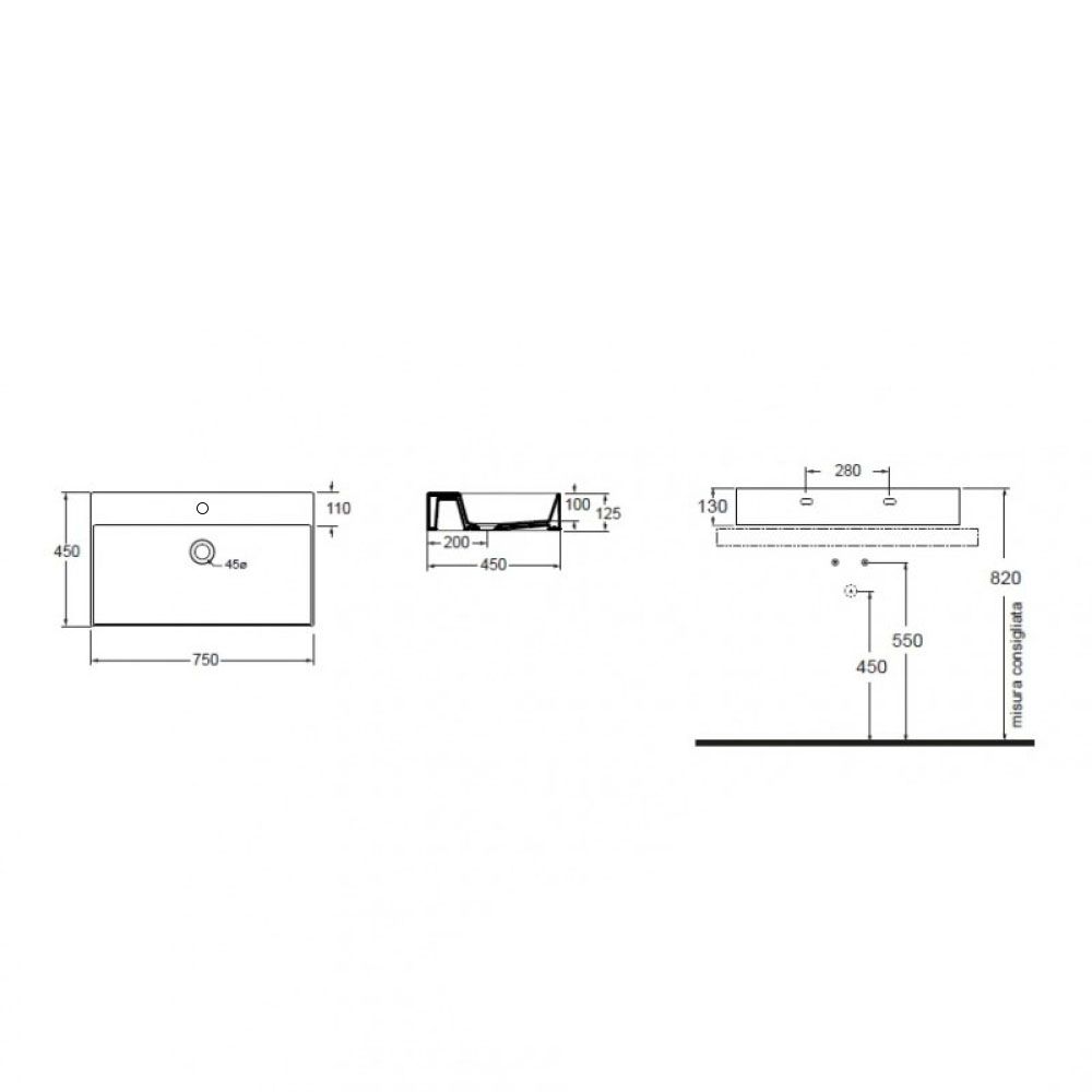 Раковина Azzurra Elegance squared EQA75MB1 Shiny white