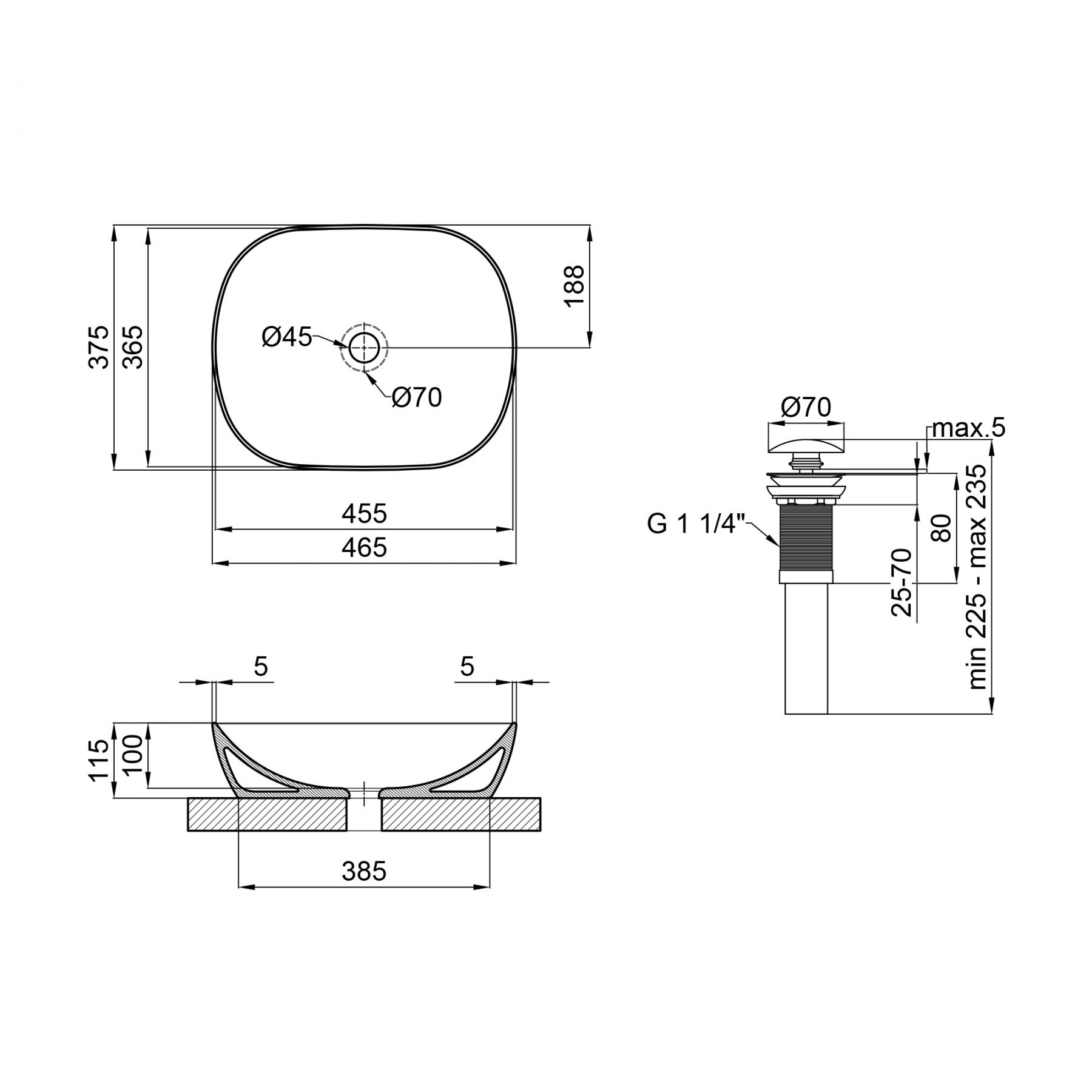 Габариты чаши 1 (ГхШхД), мм:100х455х365