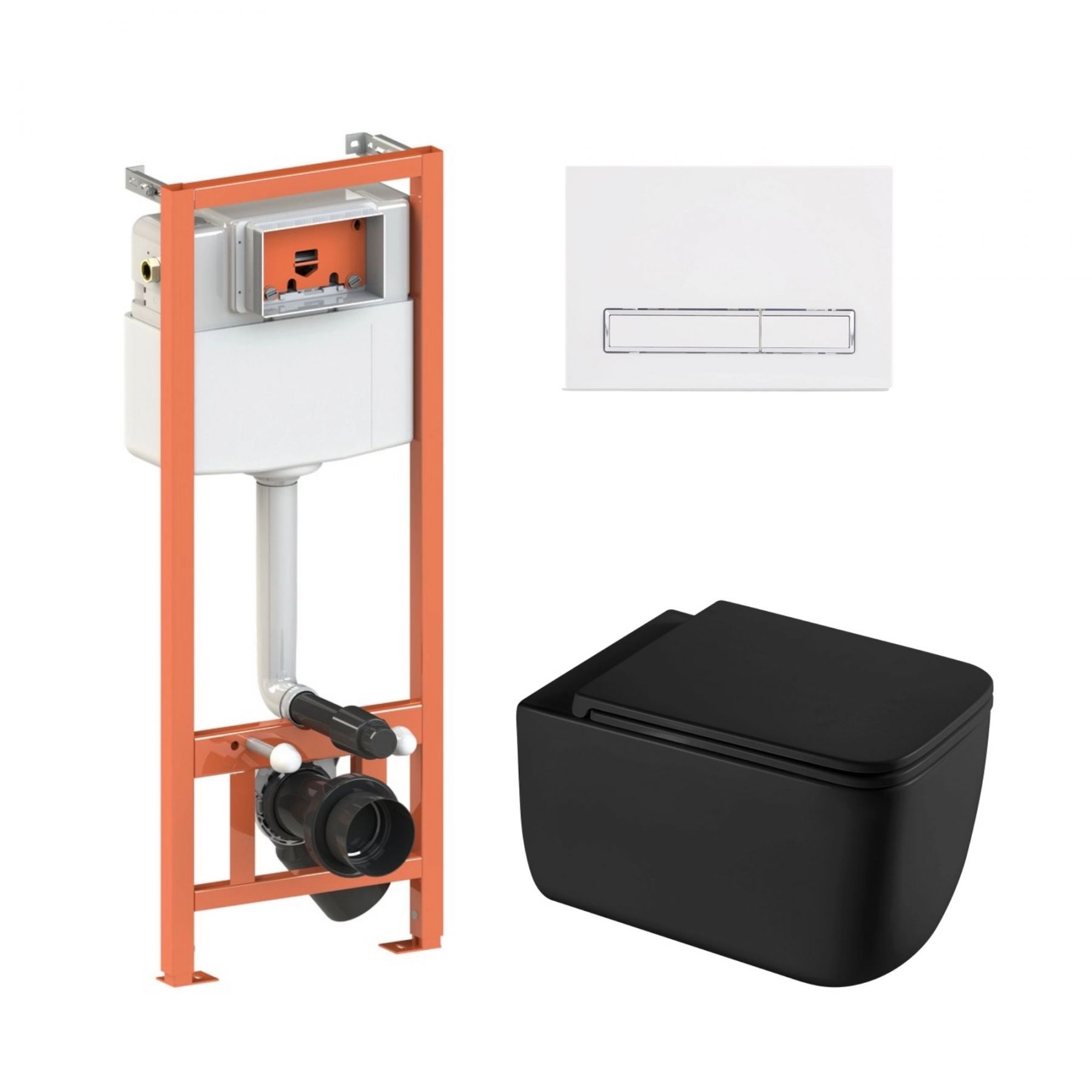 Комплект: Qtap Gemini Ultra Quiet подвесной унитаз QT2533076EUQMB + Nest комплект установки 4в1 (Клавиша линейная White) QT0133M425 + QT0111M08V1384W
