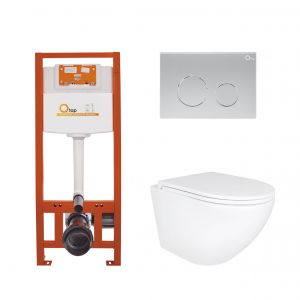 Комплект Qtap Robin Ultra Quiet подвесной унитаз QT1333046EUQW с комплектом Nest инсталляции 4в1 (круглая клавиша Satin) QT0133M425 + QT0111M11111SAT является удобным решением для современного санузла. Он комплектуется унитазом, сиденьем, установочной рамой, панелью смыва, звукоизоляционной прокладкой. Благодаря застенному монтажу инсталляции и подвесной конструкции унитаза этот комплект сделает Ваши гигиенические процедуры более комфортными, а уборка не доставит лишних хлопот. Унитаз разработан по новейшей технологии смыва Ultra Quite – смывает качественно и очень тихо.