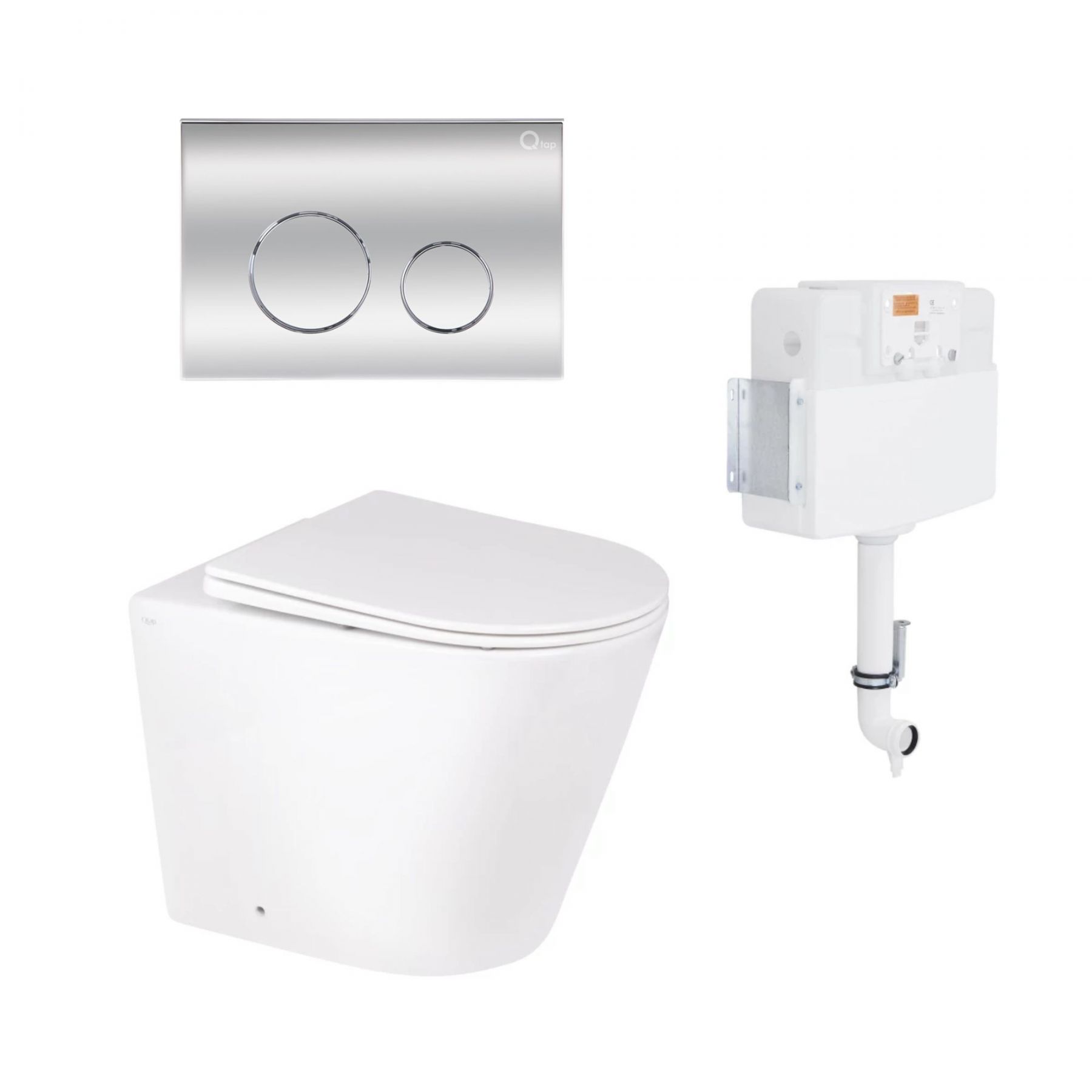 Комплект: Qtap Swan унитаз напольный Rimless QT16223178W + Nest комплект инсталляции 2в1 (круглая клавиша Chrome) QT0122490S4Q1 + QT0111M11112CRM