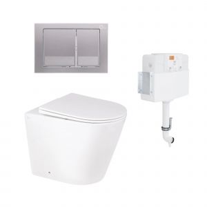 Комплект: Qtap Swan унитаз напольный Rimless QT16223178W + Nest комплект инсталляции 2в1 (квадратная клавиша Satin) QT0122490S4Q1 + QT0111M06029SAT